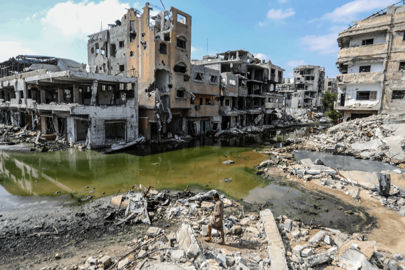 İsrail sürüsünün çekildiği Gazze'nin Han Yunus kenti, haftalarca süren bombardıman nedeniyle yerle bir edildi.