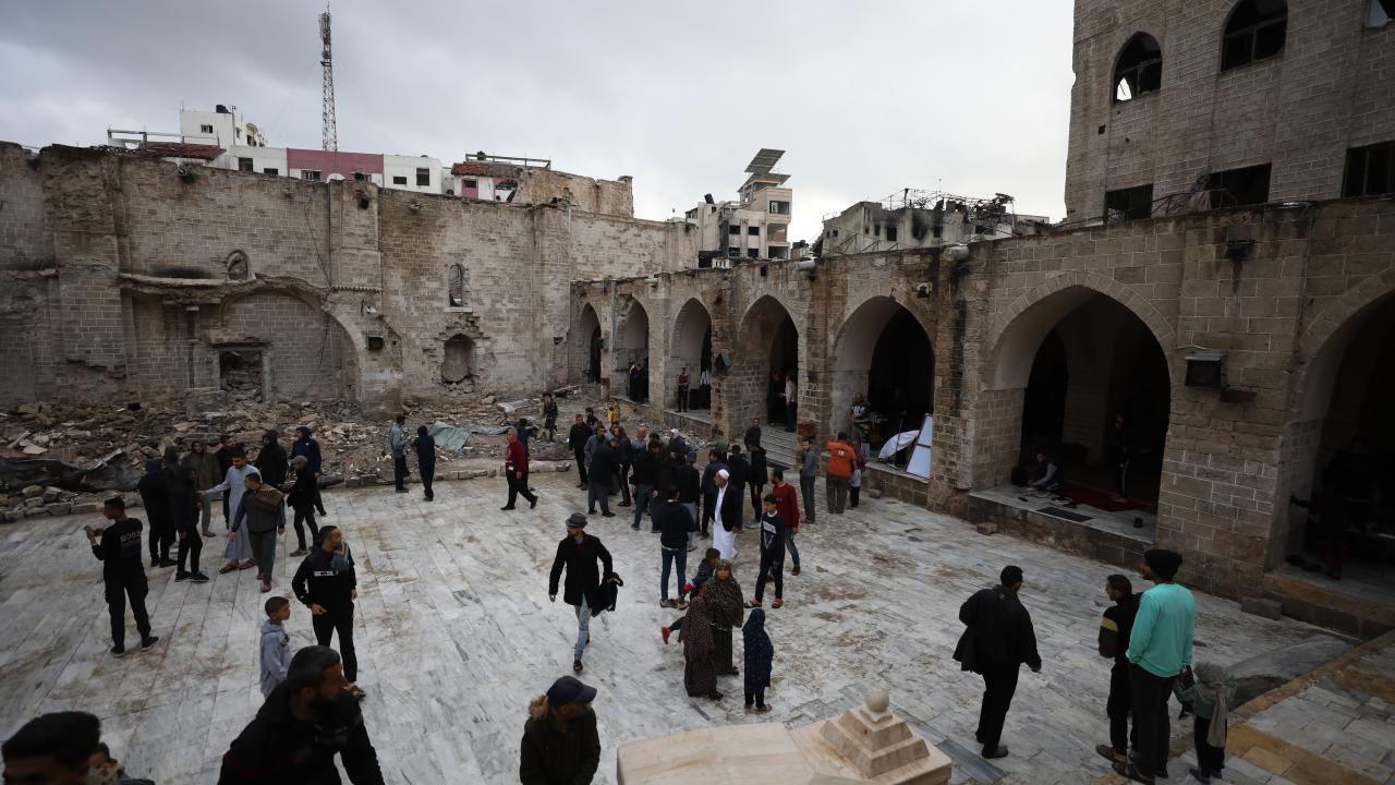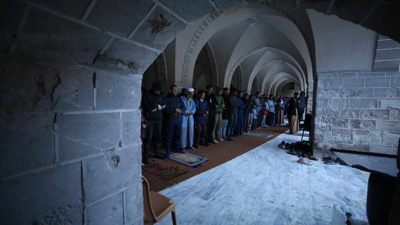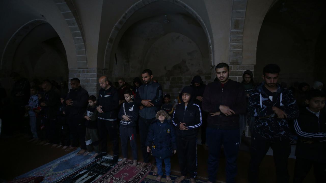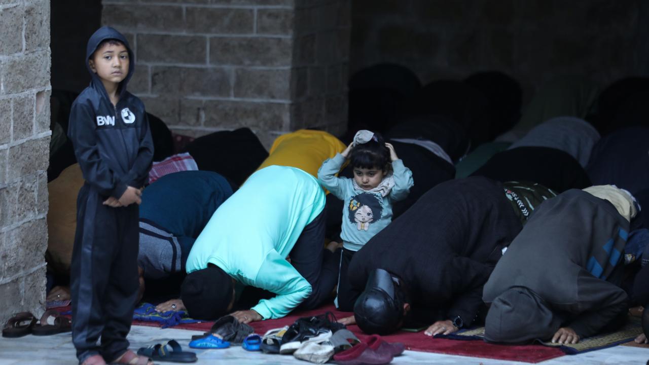 Filistin halkı katil İsrail'in işgali altındaki Gazze Şeridi'nde buruk bir bayram geçiyor. Gazze'nin Refah kentindeki Filistinliler, bayram namazını İsrail saldırıları sonucu yıkılan El Huda Camii'nde kıldı.