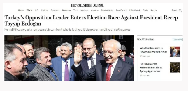 NYT, Türkiye'de eş zamanlı olarak düzenlenecek cumhurbaşkanlığı ve parlamento seçimlerinde dünyanın 20 en büyük ekonomisinden biri olan Türkiye'nin ekonomik geleceğinin de oylanacağı yorumunu yaptı, Millet İttifakı'nın hafta sonu yaşadığı adaylık krizine de geniş yer verildi.