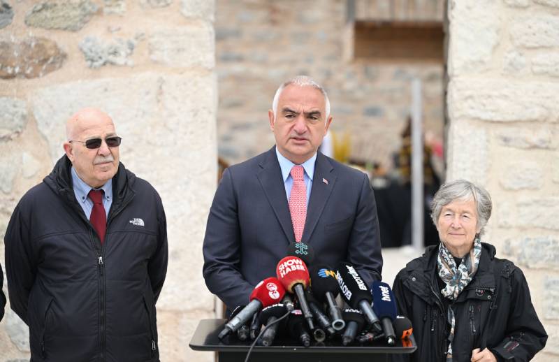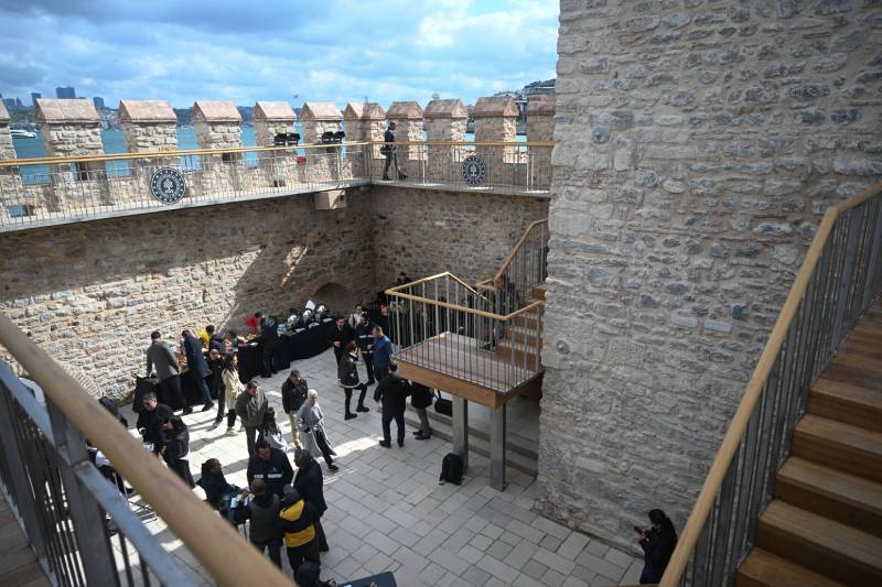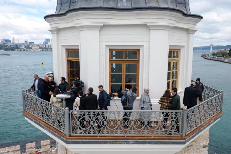 Kız Kulesi'ne ait 1826 ve 2023 yıllarına ait fotoğrafları işaret eden Bakan Ersoy, "Bina depreme karşı güçlendirildi. II.Mahmut dönemi dedik. Elimizdeki en iyi dokümanlar vardı. Sadece fikir sahibi olmanız için bakın binanın 1826'daki görüntüsü. Bu 1826'da çekilmiş II.Mahmut dönemine ait fotoğrafı. Bu da 2023'teki fotoğrafı. Binanın aslına uygun olarak nasıl restore edildiğini burada da görebiliyorsunuz. Aslında yakın tarihimiz yani, son 20 yıldır, 30 yıldır gözlemlediğimiz görüntüsü, yanlış görüntüsüydü. Şurada görüyorsunuz, kulede çapraz çelikler vardı. Onlar deprem güçlendirmesi sebebiyle yapılmış orijinal olmayan çelikler. Orijinal olmayan her türlü eklentisi söküldü. Hatta size bir şey göstereceğim; bakın bu 10 liralıklar. 10 liralıkların üzerindeki görüntü aslında hocamın bize önerdiği görüntüsü. II. Mahmut döneminin görüntüsü bu. Aslına özgün haline, bu çalışmayla binamız getirildi" dedi.
