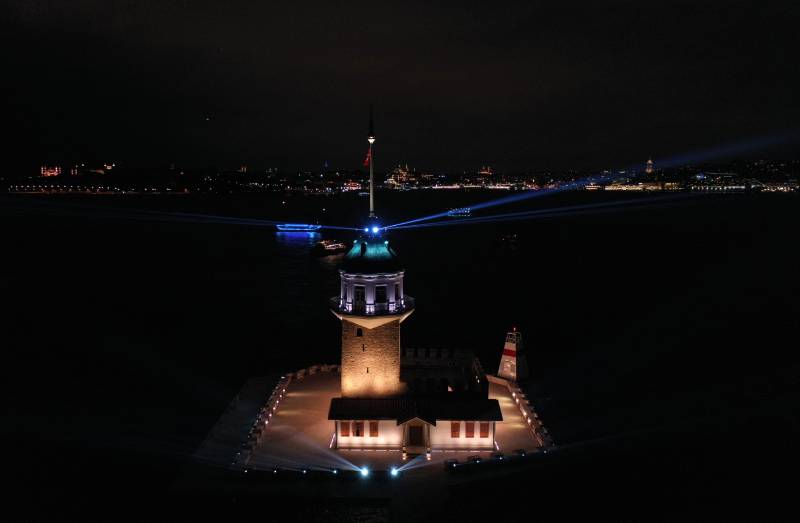 Kültür ve Turizm Bakanlığı tarafından yapılan restorasyon çalışmaları tamamlanan Kız Kulesi'nden saat 21.00'da ışık ve lazer gösterisi yapıldı.