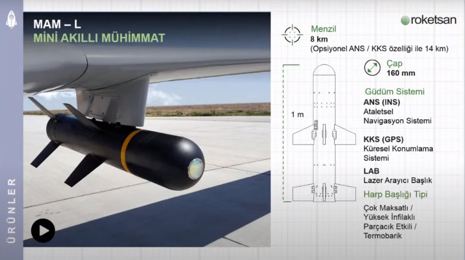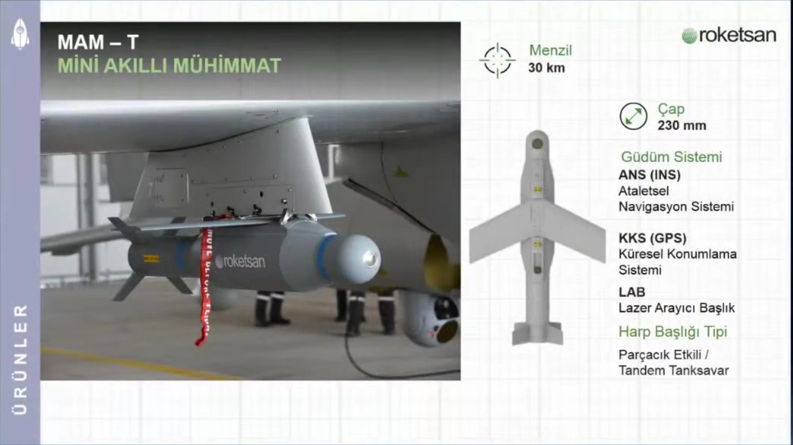 Türk SİHA’ları tarafından aktif olarak geliştirilen ve 40’ı aşkın ülkeye ihraç edilen MAM-L mühimmatından 4 kat daha fazla ağırlığa sahip olan MAM-T, Mk81 muadili harp başlığı ile hedef üzerinde çok daha yıkıcı sonuçlara yol açabiliyor.