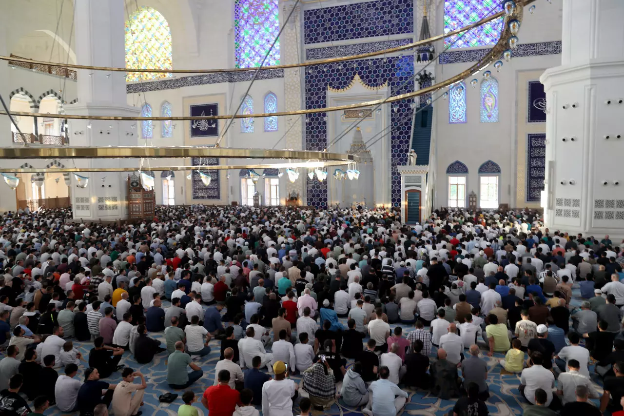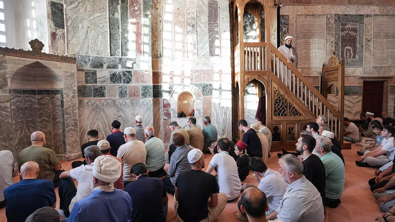 Kurban Bayramı'nı burada karşılamak isteyenler, sabah namazıyla camîye gelmeye başladı.Camînin içini dolduran cemaat, namaz için dışarıya serilen seccadelerde de saf tuttu.Vatandaşlar namazın ardından camî çıkışında birbirleriyle bayramlaştı.