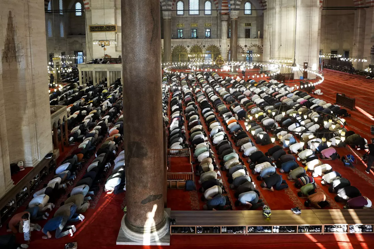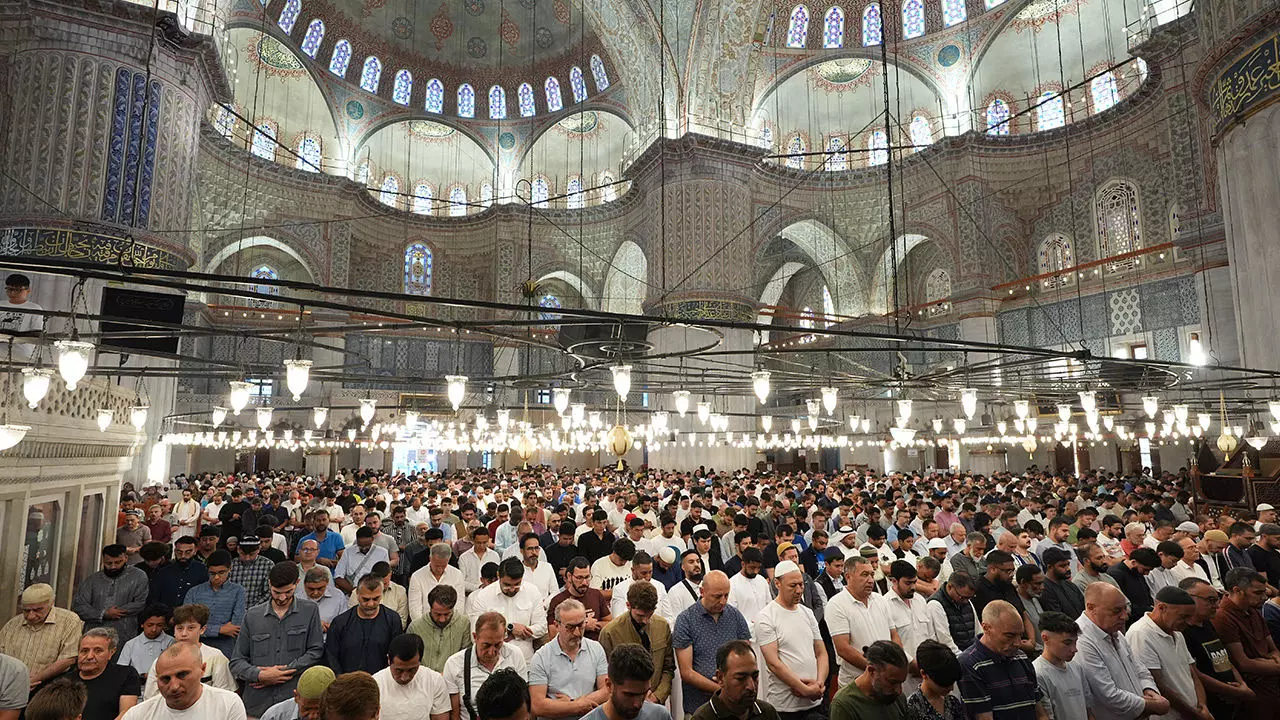 İstanbul'da Sultanahmet, Süleymaniye ve Büyük Çamlıca Camî'ne gelen vatandaşlar, Kurban Bayramı namazını kıldı.