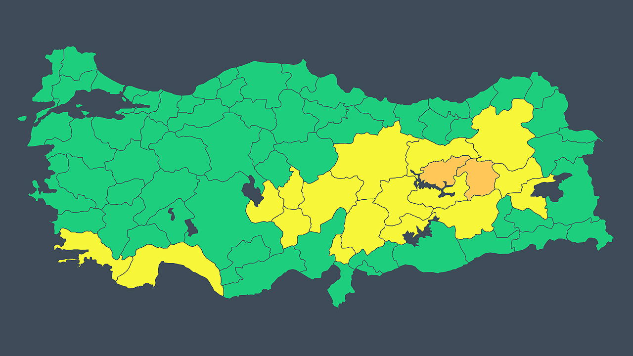 Kayseri, Malatya, Kahramanmaraş, Muğla sarı kodla uyarıldı.