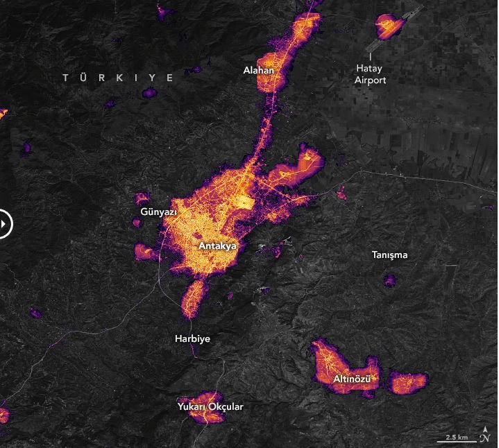 NASA'nın paylaştığı uydu fotoğraflarında, depremden sonra Antakya'da yaşam alanının deprem öncesine göre büyük oranda küçüldüğü görüldü. İşte NASA'nın paylaştığı uydu fotoğrafları...
