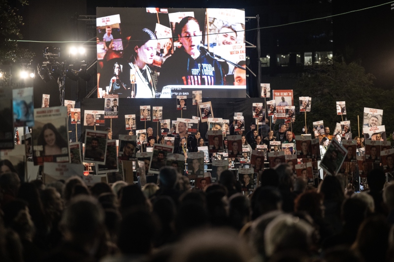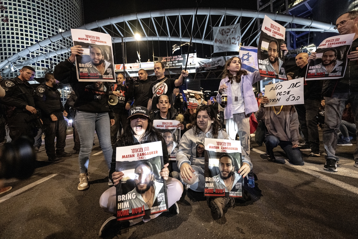 Öte yandan Tel Aviv’deki Müze Meydanı'nda toplanan İsrailli esir yakınları ve onlara destek veren binlerce kişi ayrı bir gösteri daha düzenledi. Gaze Şeridi'nde bulunan İsrailli esirlerin bir an önce kurtarılmasını talep eden göstericiler ellerinde İsrailli esirlerin fotoğraflarını taşıdı.Buradaki göstericiler de yakınlardaki bir yolu oturarak ve çevredeki demir bariyerleri yerleştirerek trafiğe kapatmak istedi.