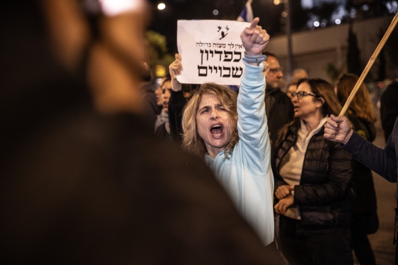 İsrail ordusunun Gazze'de yaptığı katliam yüz günü aşkın bir süredir devam ederken İsrail sokaklarında da hareketli günler yaşanıyor. Başbakan Binyamin Netanyahu liderliğindeki hükümeti "İsrail’in güvenliğini sağlayamamak" ve "Gazze’deki İsrailli esirleri umursamamakla” suçlayan binlerce kişi şehirdeki Habima Meydanı'nda toplanarak gösteri düzenledi.
