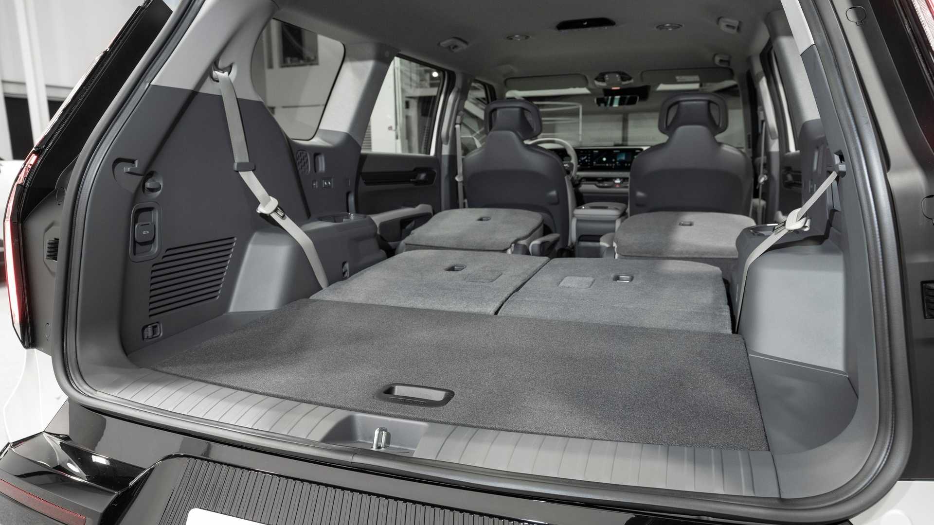 Kia EV9, gerçekten de çok amaçlı düşünülmüş bir otomobil. Zira arka koltukları birbirlerine doğru çevirebildiğiniz gibi tamamen kapatabileceksiniz. Böylelikle bu lüks SUV, eşya taşıma gibi amaçlarla da kullanılabilecek. Bu arada; orta sıradaki arka koltukların doksan derece de döndürülebildiğini, bu sayede yükleme ve boşaltma işlemlerinin kolaylaştırıldığını da belirtelim.
