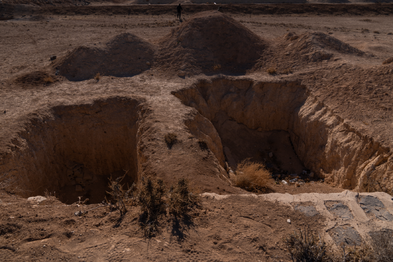 Yetkililer, alanda 20 metre derinliğe kadar kazılmış çukurların cesetlerin topluca gömülmesi için kullanıldığını düşünüyor. Cesetlerin üst üste yığıldığı ve mezarların rejim tarafından gizlice kullanıldığı ortaya çıktı.