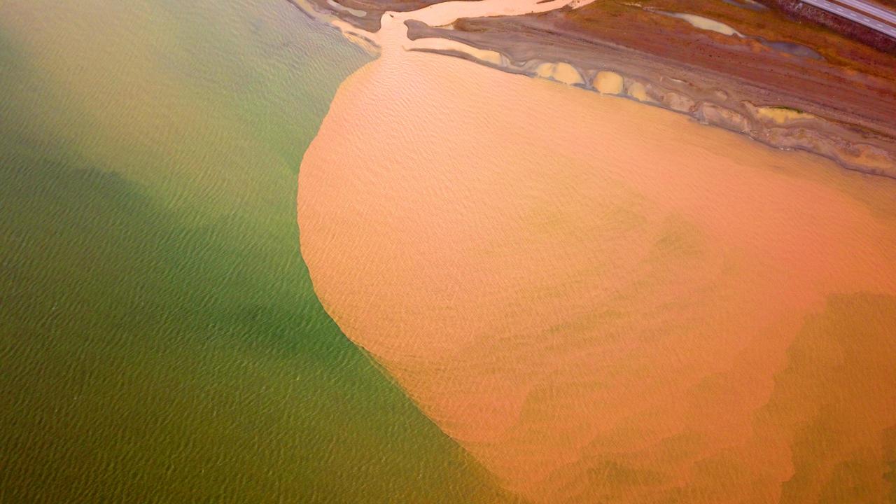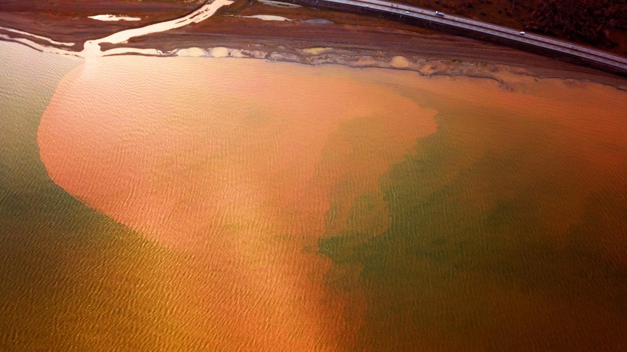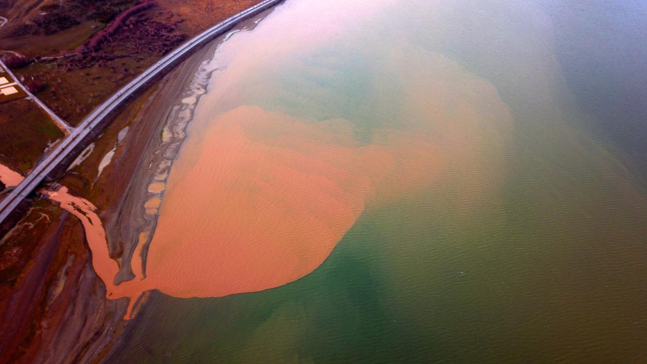 Bitlis'in Ahlat ilçesinde yaşanan yağmur ve sel felaketi sonrasında dere yataklarından taşan su, Van Gölü'nü kızıl renge boyadı.