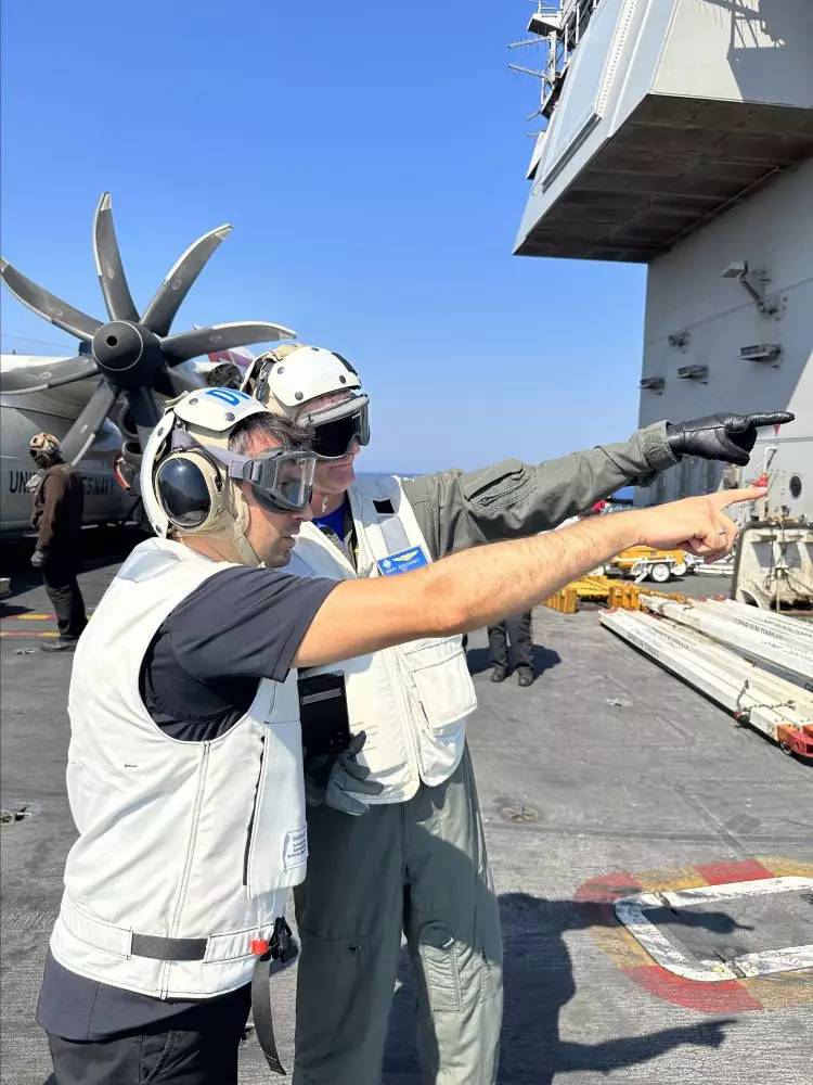 Selçuk Bayraktar, Tümamiral Eslich ve gemi Komutanı Amiral Rick Burgess ile gemide görevli ABD'li subaylara TCG ANADOLU ve benzeri kısa pistli gemilere iniş-kalkış yapması planlanan Bayraktar TB3 SİHA ile Türkiye'nin ilk insansız savaş uçağı olan Bayraktar KIZILELMA ile ilgili devam eden geliştirme çalışmalarını anlattı.