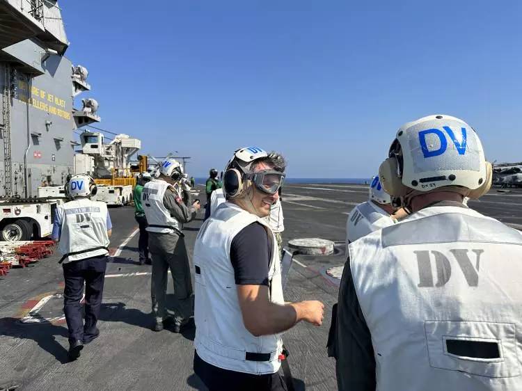 Antalya Havalimanı'ndan havalanan C-2 nakliye uçağıyla uçak gemisine inen Türk Silahlı Kuvvetleri heyeti ve Selçuk Bayraktar'a, Baykar Genel Müdür Yardımcısı Mehmet Ali Güney eşlik etti.