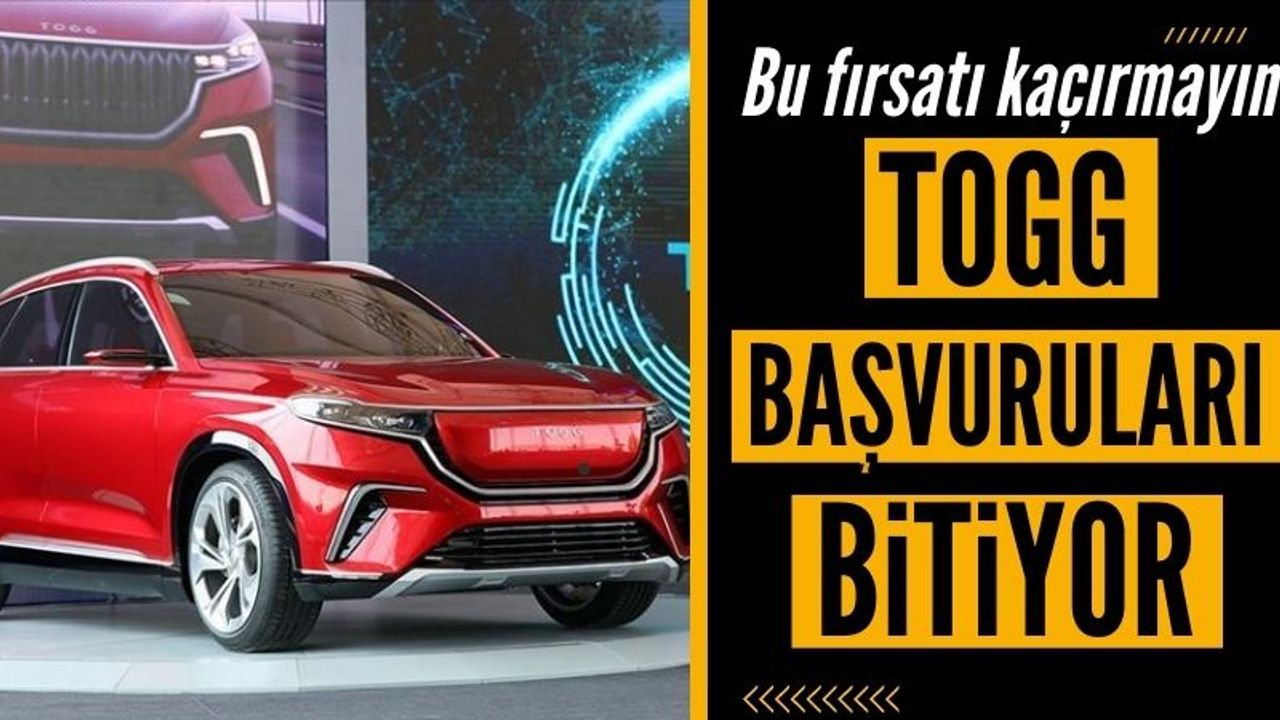 Türkiye'nin gurur projelerinden biri olan yerli ve milli otomobil Togg'da ön sipariş süreci sona eriyor. Başvuruları banka yoluyla e-Cüzdan'a yapılacak transferler bugün saat 17.00'ye kadar işleme alınacak ve aynı gün saat 22.00'de sipariş sistemi kapanacak.