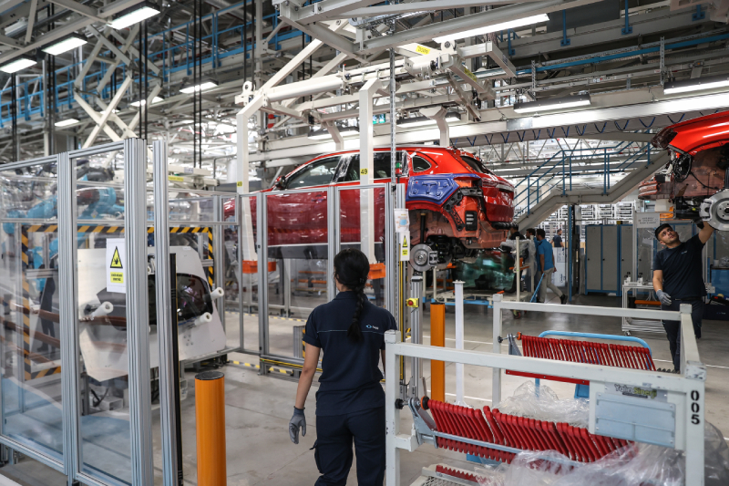 Türkiye'nin otomobili Togg'un, Bursa'nın Gemlik ilçesindeki Teknoloji Kampüsü'nde geçen ay 1965 adet T10X model akıllı cihazın kullanıcılarıyla buluşturularak rekora ulaşılmasının ardından üretim bantları ve kalite kontrol aşamalarında çalışmalar vardiya sayısının artmasıyla hızla sürüyor.