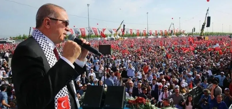 İstanbul'da Cumhurbaşkanı Erdoğan tarafından organize edilen Büyük Filistin Mitingi'ne 1,5 milyon insan katıldı.