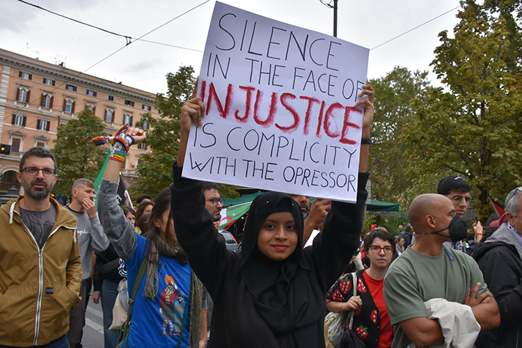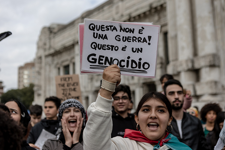 İtalya'nın başkenti Roma'da Filistinli Öğrenciler İnsiyatifi'nin girişimiyle "Bu bir savaş değil, soykırım! Filistin çağırıyor" temasıyla Filistin'e destek mitingi ve yürüyüşü yapıldı.