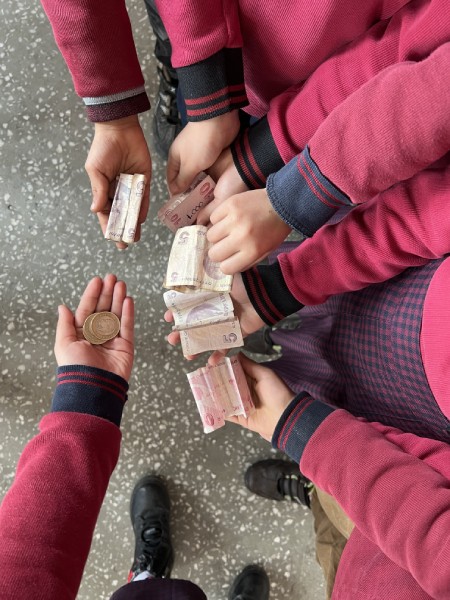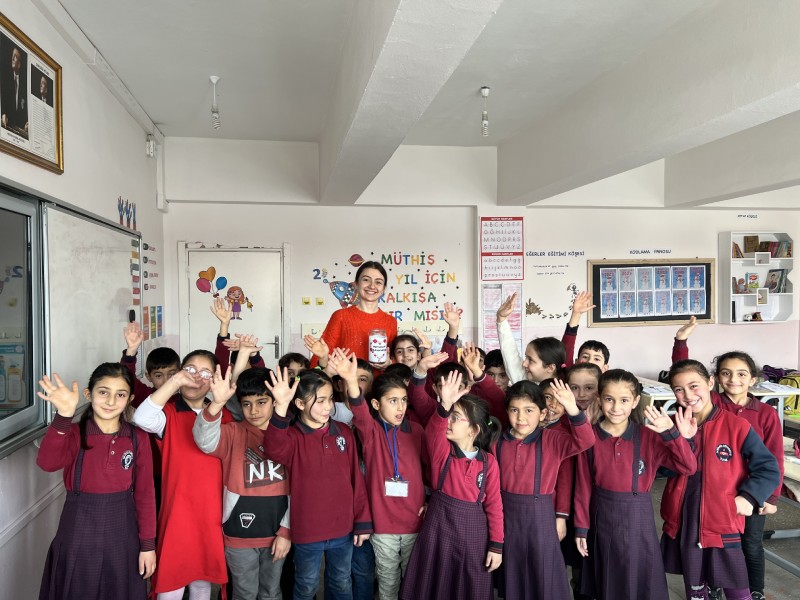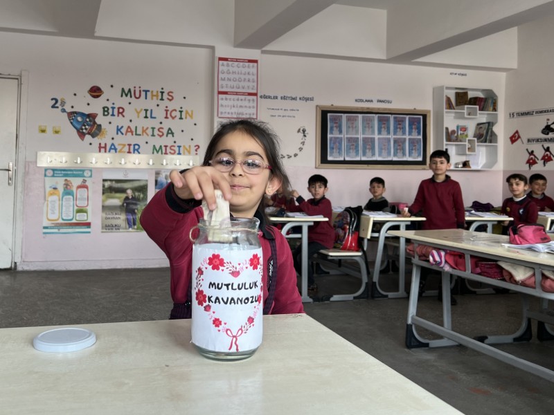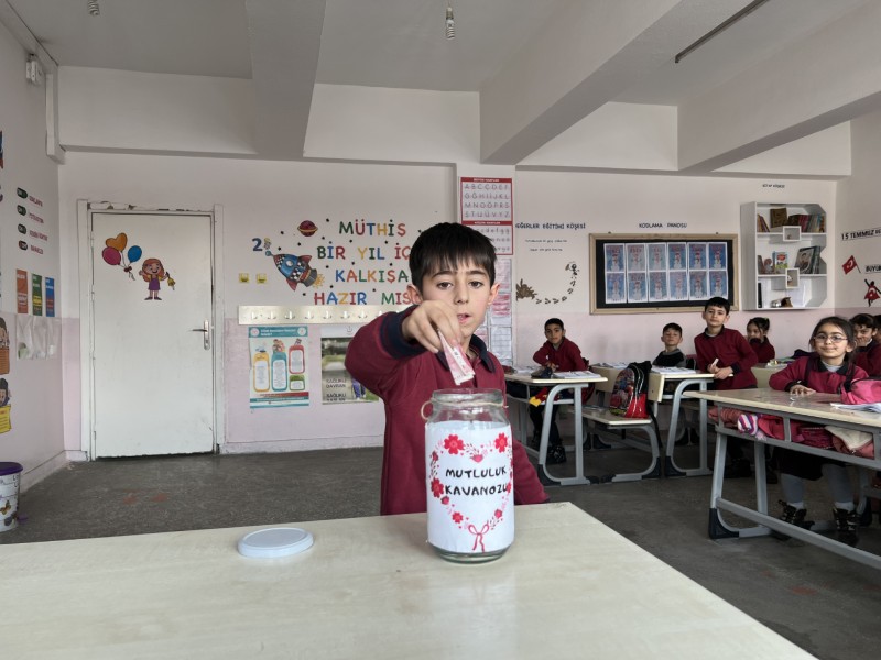 Öğrenciler, bir günlük harçlıklarını sınıflarda üzerinde "Mutluluk Kavanozu" yazılı kumbaralara attı.