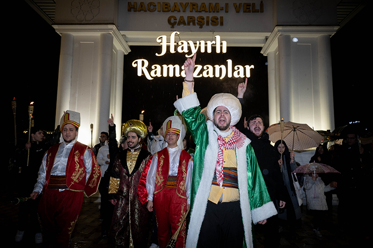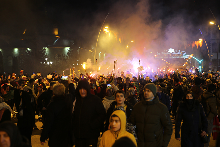 "Hoş geldin 11 ayın sultanı" yazılı pankart ve meşaleler taşıyan grup, salavat ve tekbirler eşliğinde Melike Hatun Camisi avlusuna yürüdü. Burada duaların okunmasının ardından ramazanın ilk teravih namazı kılındı.