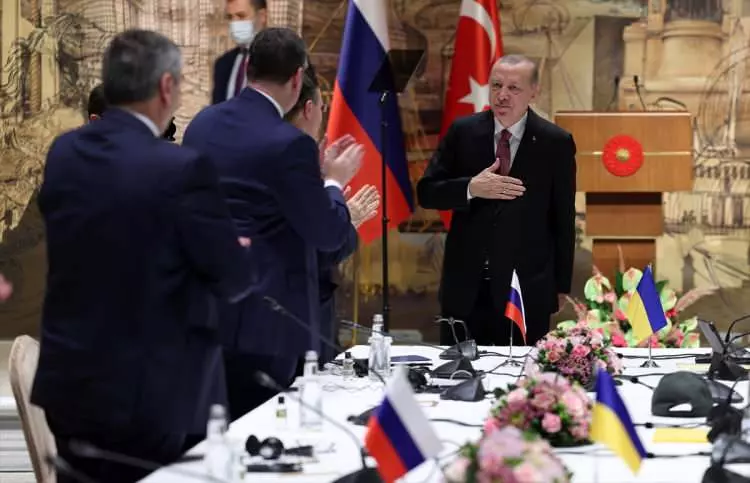Rusya'nın hiçbir zaman müzakereleri reddetmediğini vurgulayan Putin, Cumhurbaşkanı Erdoğan'ın yardımlarıyla geçen yıl martta Türkiye'de, Rusya ile Ukrayna heyetlerinin müzakereler yaptığını hatırlattı.İstanbul'daki bu müzakerelerde, iki tarafın bir metin üzerinde anlaştığını, Ukrayna heyetinin de bu metni parafladığını dile getiren Putin, bugüne kadar bu metni hiç göstermediklerini söyledi.