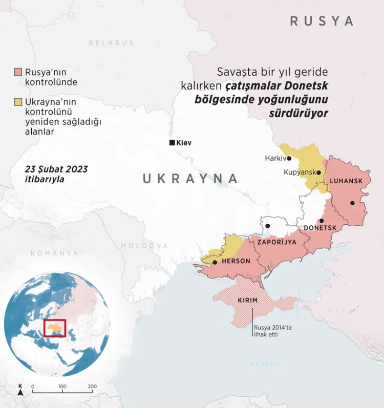 Rusya'nın 2014'te Kırım'ı yasa dışı olarak ilhak etmesinin ardından 24 Şubat 2022'de Ukrayna'ya karşı başlattığı savaş tüm şiddediyle devam ediyor.