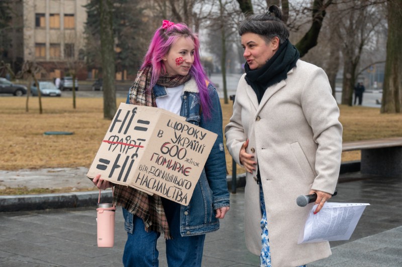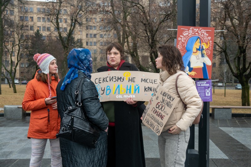 Ukrayna ile Rusya arasındaki savaş birinci yılını geride bırakırken 8 Mart Dünya Kadınlar Günü kapsamında Ukrayna'nın Harkiv kentinde Ukraynalı sanatçıların "Kadın ve Savaş" konulu eserleri Svobody Meydanı'nda sergilenmeye başladı.