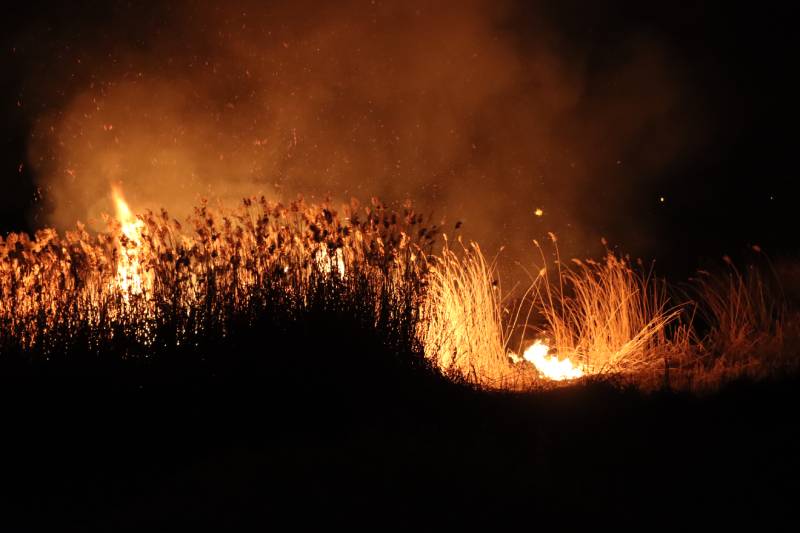 Sazlığının büyük bölümünün yandığını ifade eden Şefketoğlu, "Gece olduğu için uçamayan hayvanların bir çoğu telef oldu. Kuşların uçup kurtulması için ıslık çalıp taş attık, yangının büyümemesi için müdahale ettik. İtfaiye ekipleri yangını söndürdü ve soğutma çalışması başlattı." diye konuştu.