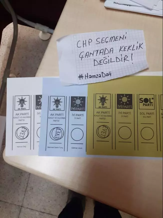 Bir vatandaşın ise aynı anda hem CHP'ye hem TİP'e hem de AK Parti'ye oy verdiği görüldü.