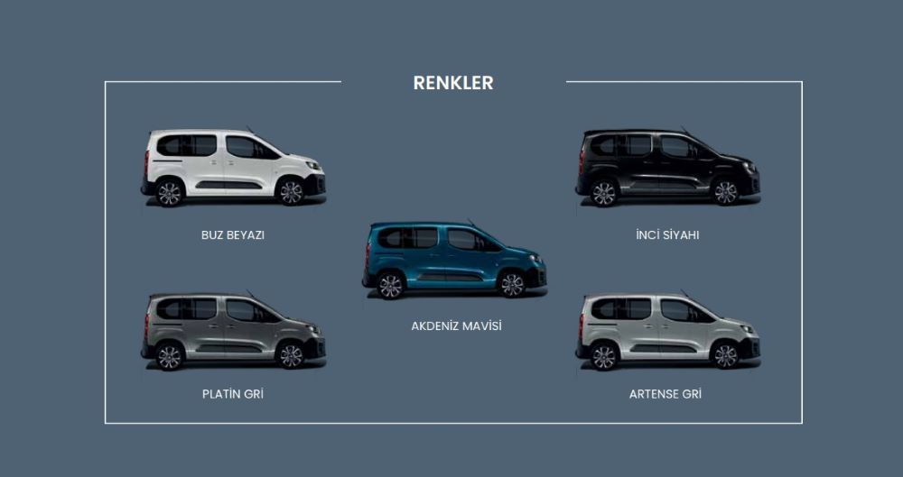 Yeni Doblo Combi'de Akdeniz mavi, platin gri, buz beyazı, inci siyahı ve artense gri renk seçenekleri yer alıyor.