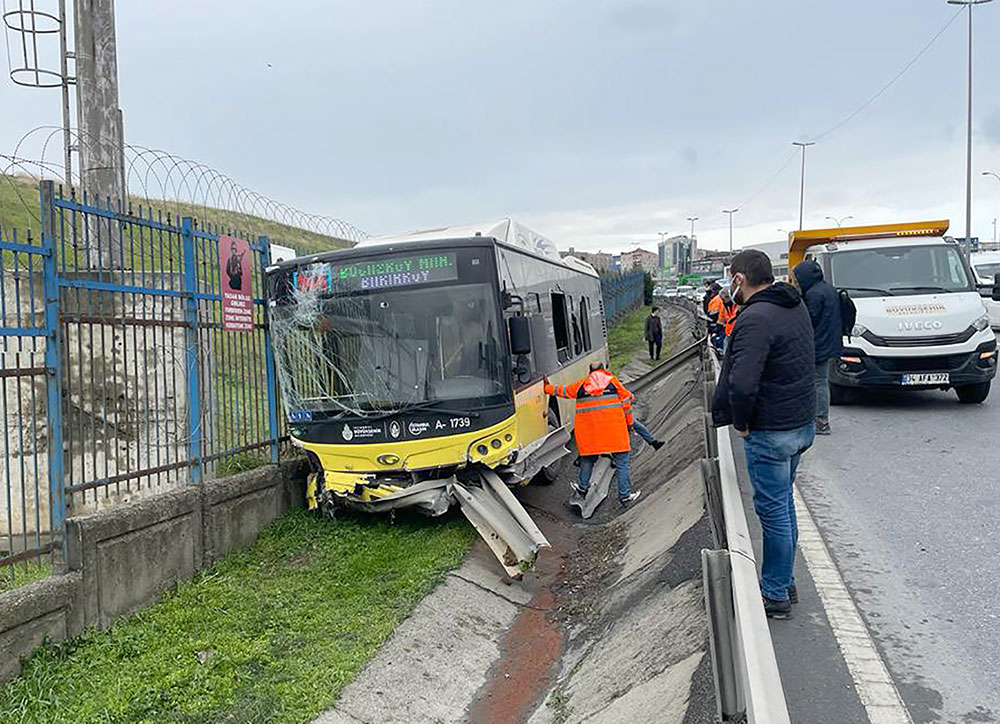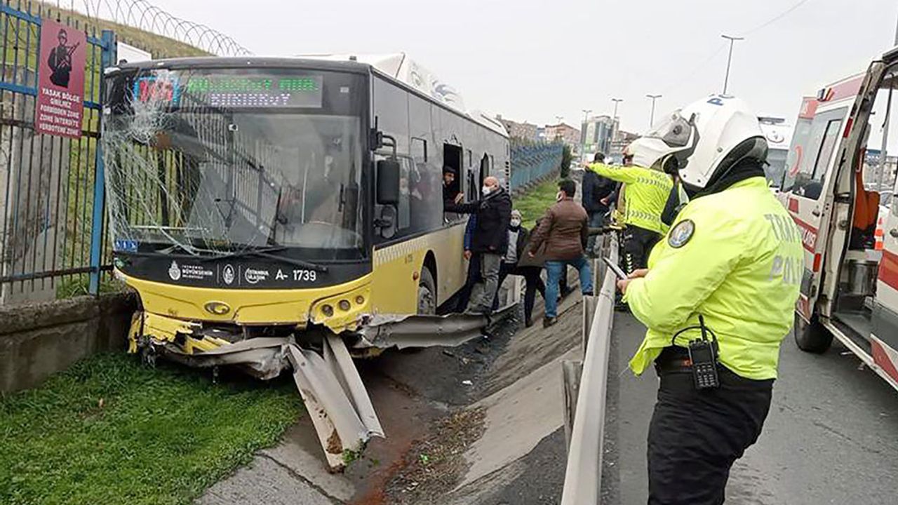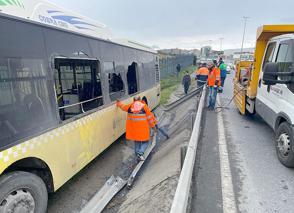 D100 kara yolu Sefaköy yan yolda Topkapı istikametinde seyreden İETT otobüsü, henüz belirlenemeyen sebeple kontrolden çıkarak bariyerlere çarpıp refüje girdi.