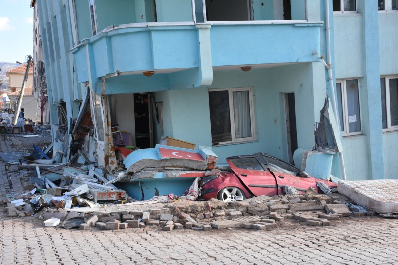 Aksu, Gölbaşı ilçe merkezindeki binaların yüzde 70'inin sağlam gibi görünse de zemin katları çöktüğü için ağır hasarlı sayıldığını belirterek, şöyle devam etti:"Bazı binalar sanki 3-4 metre öne gelmiş gibi. Zeminin yumuşak olduğu yere doğru sıvılaşma esnasında binalarda lokal anlamda ötelenmeler meydana gelmiş. Binalar, park edilen araçların üzerine oturmuş. Bu gördüğümüz daha çok balkon altındaki çıkma kısmında meydana gelen oturmadır. Yani şu an gördüğünüz görüntüde zemin kat tamamen çökmüş ve birinci kat, zemin kat pozisyonuna geçmiş durumda. Birinci kat ise park halindeki araçların üzerine oturmuş."