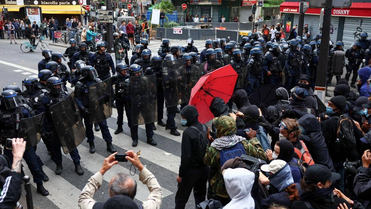 Başkent Paris'te yüzlerce eylemci Kuzey Garı'nın etrafında toplanırken, bölgede çok sayıda polis ekibi ve kamyonlar bulunuyor.