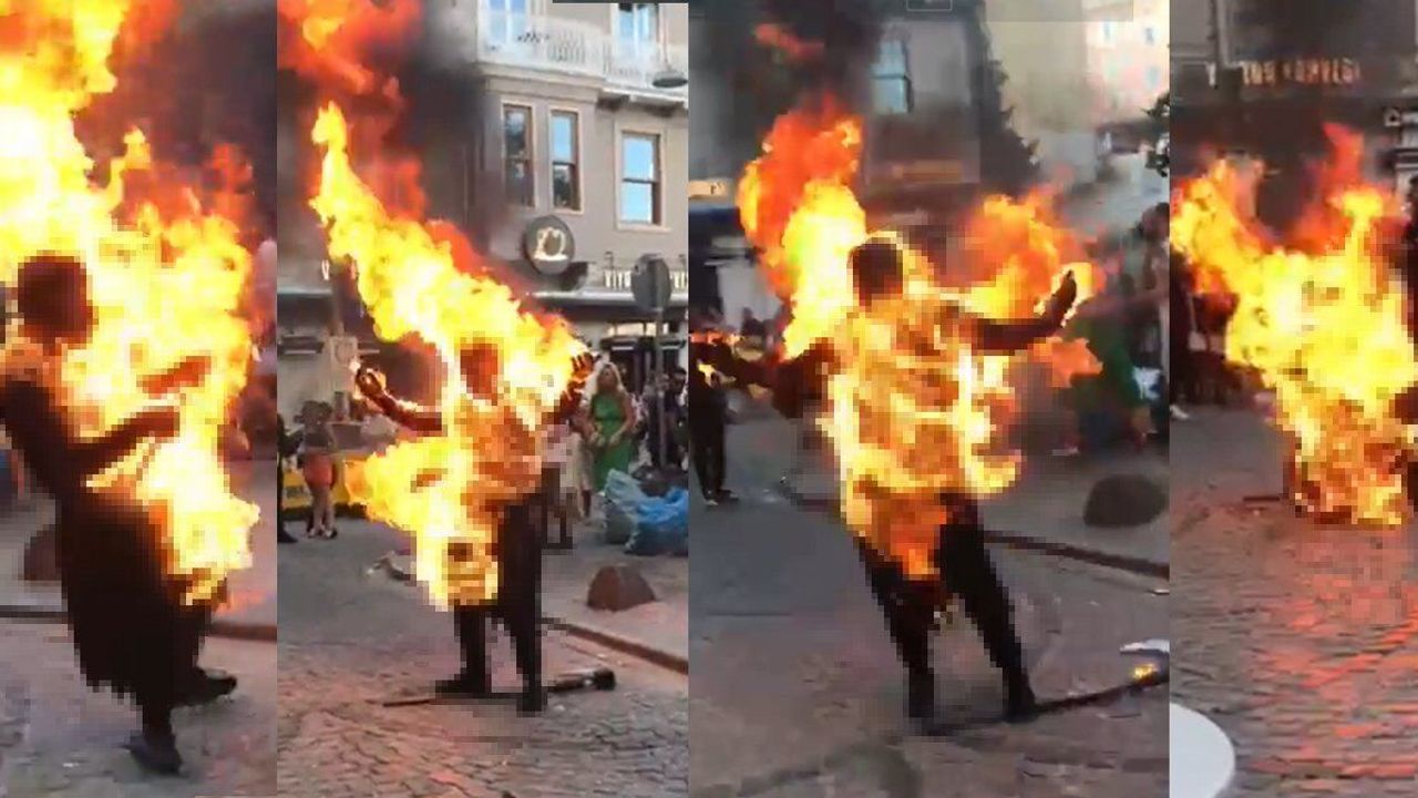 Valilikten yapılan açıklamada, saat 18.30 sıralarında Beyoğlu ilçesi Galata Kulesi yakınında Konya ili Meram ilçesi nüfusuna kayıtlı A.C.T.P. adlı kişinin üzerine döktüğü yanıcı maddeyle kendisini yakma teşebbüsünde bulunduğu belirtildi.