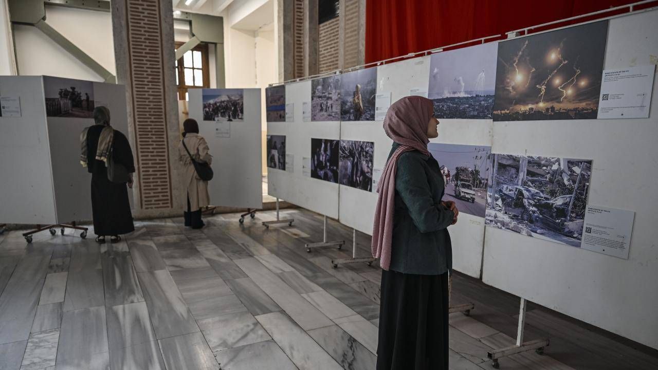 AA muhabirlerinin İsrail'in Filistin'de uyguladığı soykırım ve zulmü belgeleyen fotoğraflarından oluşan "Kanıt" kitabındaki görsellerden oluşan sergi, katılımcılar ve üniversite öğrencileri tarafından yoğun ilgi gördü.