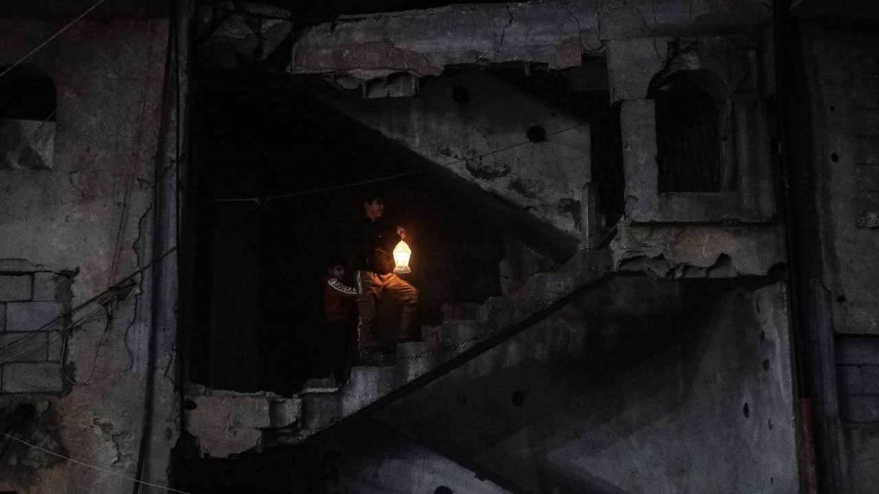 Yıkımın ve zor yaşam koşullarının ortasında çocuklar, tüm olumsuzluklara rağmen ramazan coşkusunu yaşatmak için ramazan ayının simgesi Fanus adı verdikleri fenerleri aydınlattı.