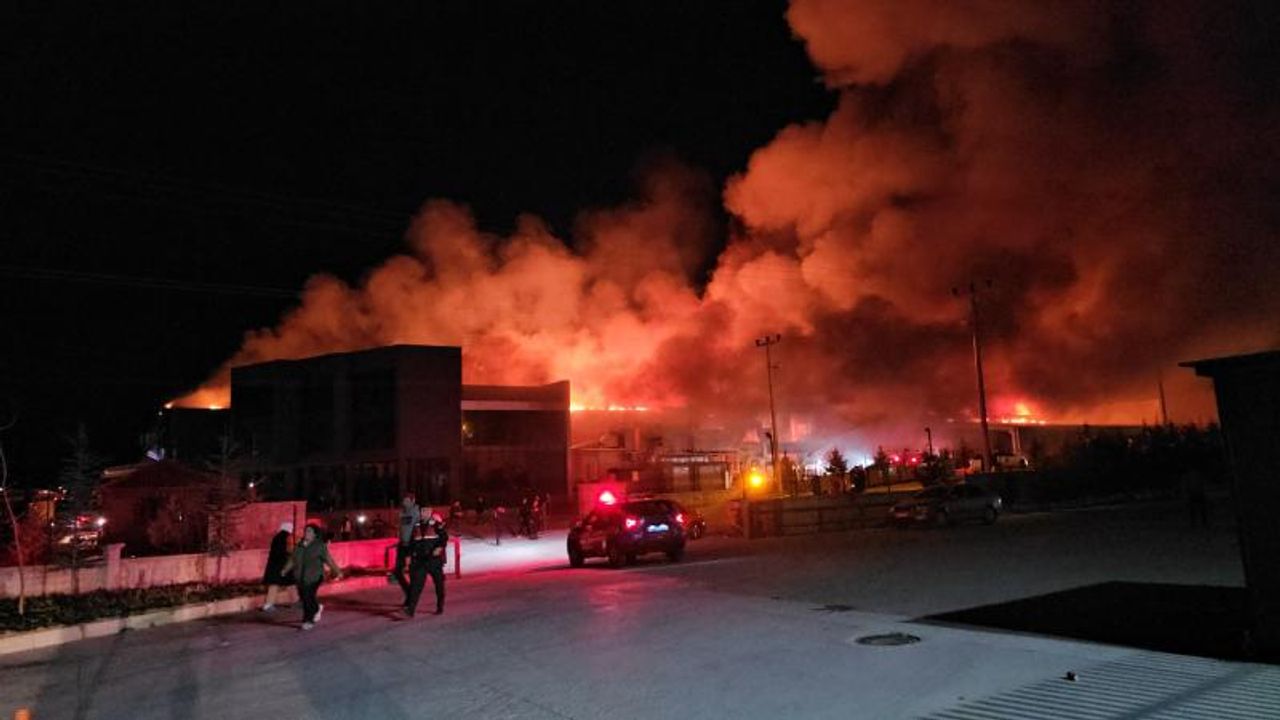 Alevlerin tamamen sardığı, ara ara patlamaların gerçekleştiği fabrikaya ekiplerin müdahalesi sonucu söndürüldü.
