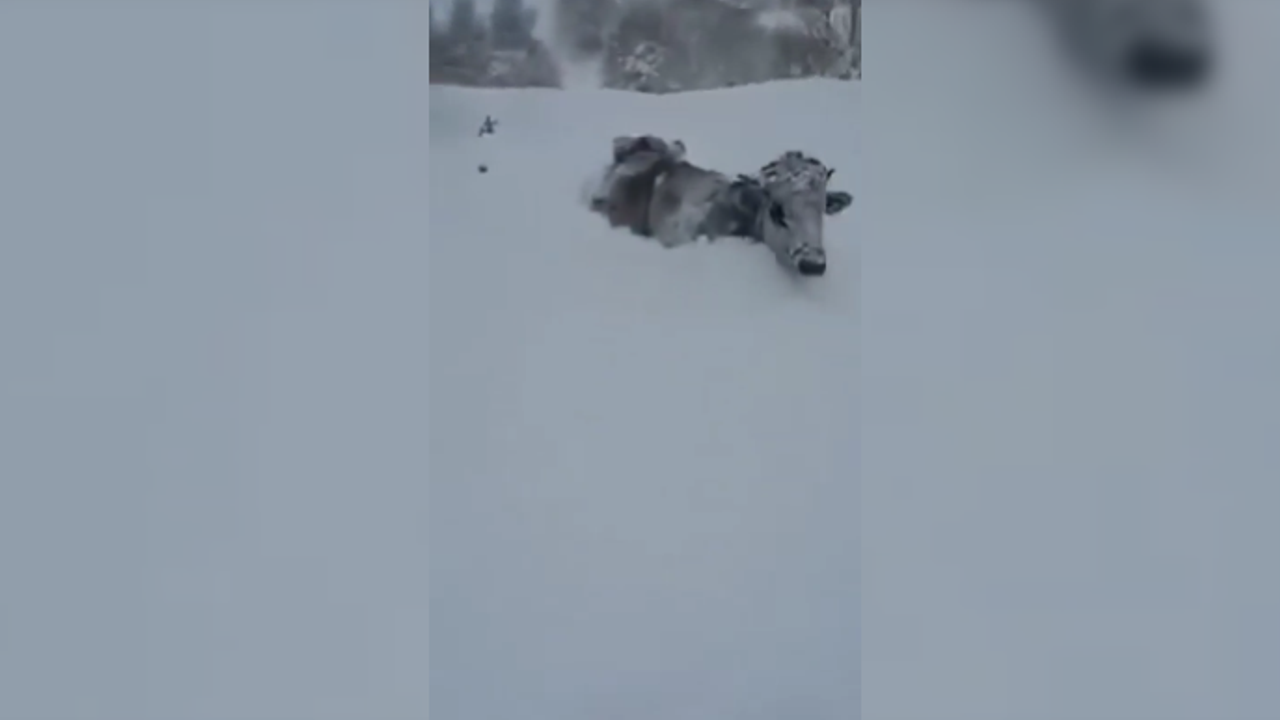 Kastamonu'da etkili olan kar yağışı, danaların ilerlemesini zorlaştırdı. Karla kaplanan alanlarda hareket etmekte güçlük çeken danalar, çiftçilerin yardımına ihtiyaç duydu.