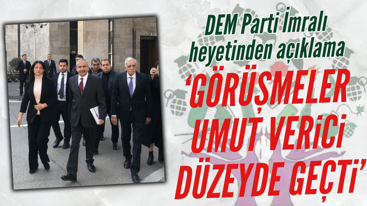 PKK terör örgütü elebaşı Abdullah Öcalan ziyareti sonrası TBMM'de siyasi parti turuna çıkan DEM Parti bu görüşmelere ilişkin açıklamasında sürecin olumlu ilerlediği vurgulandı.