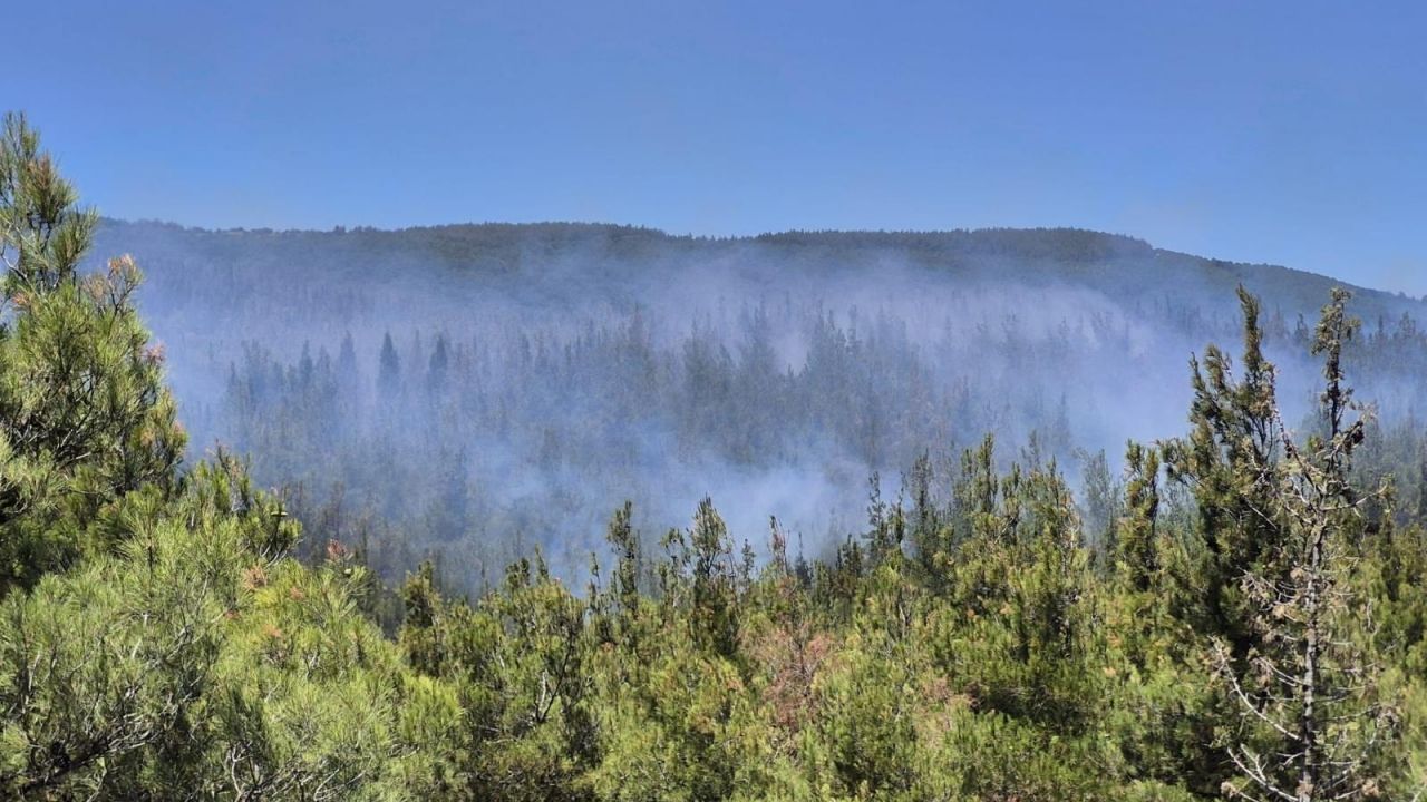 İhbar üzerine bölgeye giden Orman Bölge Müdürlüğü ve itfaiye ekipleri, yangına havadan ve karadan müdahale başlattı.