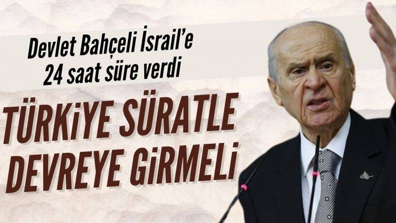 MHP Genel Başkanı Devlet Bahçeli, sosyal medya hesabından yaptığı paylaşımda, 2 haftadır Gazze'de zincirleme insani felaketler yaşandığını, soykırım raddesine ulaşan hunhar saldırıların artık sabır ve tahammül sınırlarını çoktan aştığını belirtti.