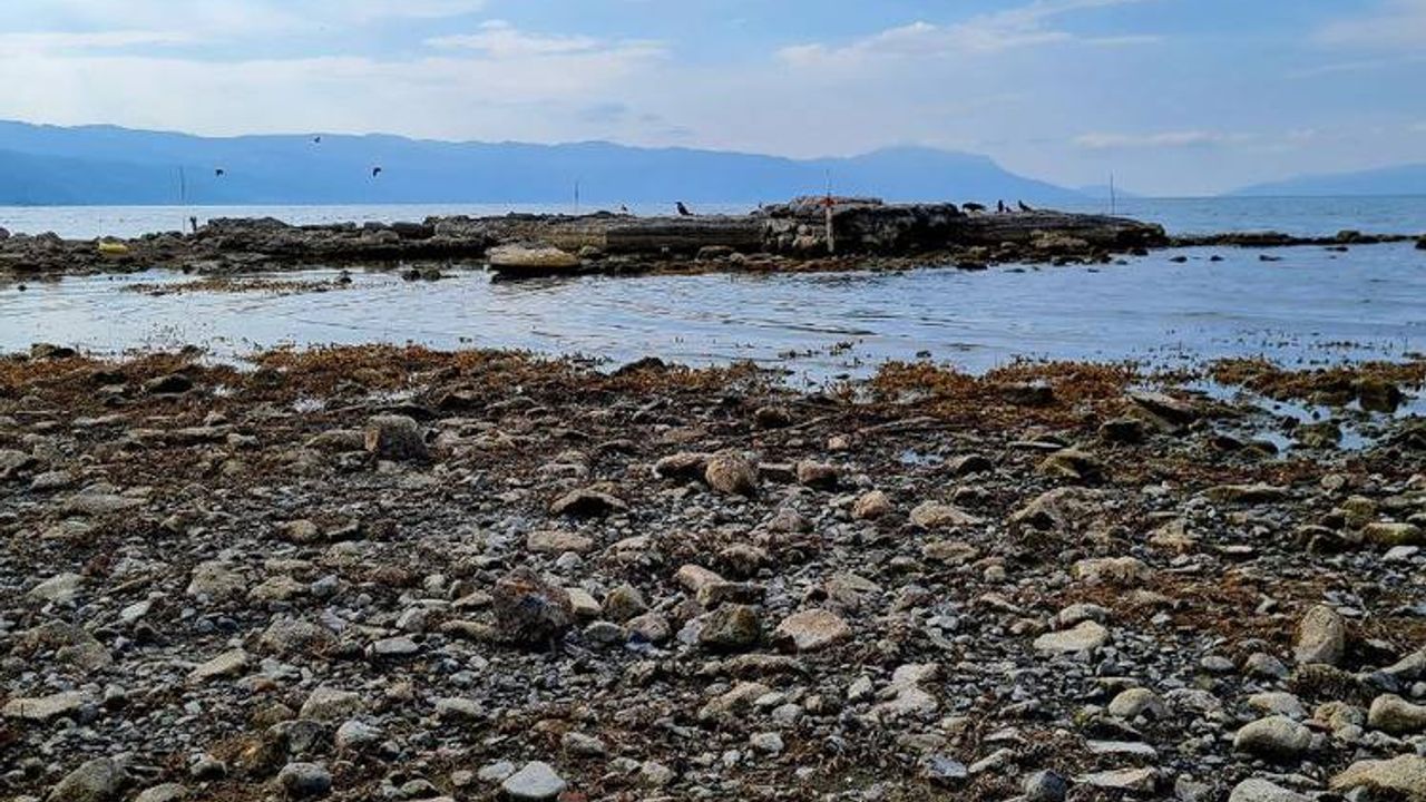 Bazilikanın büyük bölümü gölün yüzeyinde görünür hale gelerek kıyıyla birleşti.