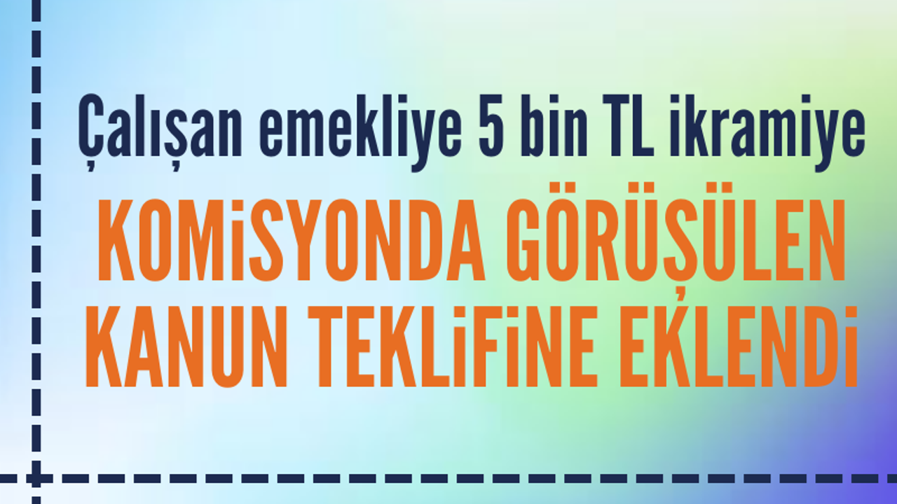 Komisyonda, fiilen çalışmayanların dışındaki emeklilere de 5 bin lira verilmesini içeren önerge kabul edilerek teklife yeni bir madde olarak ihdas edildi.