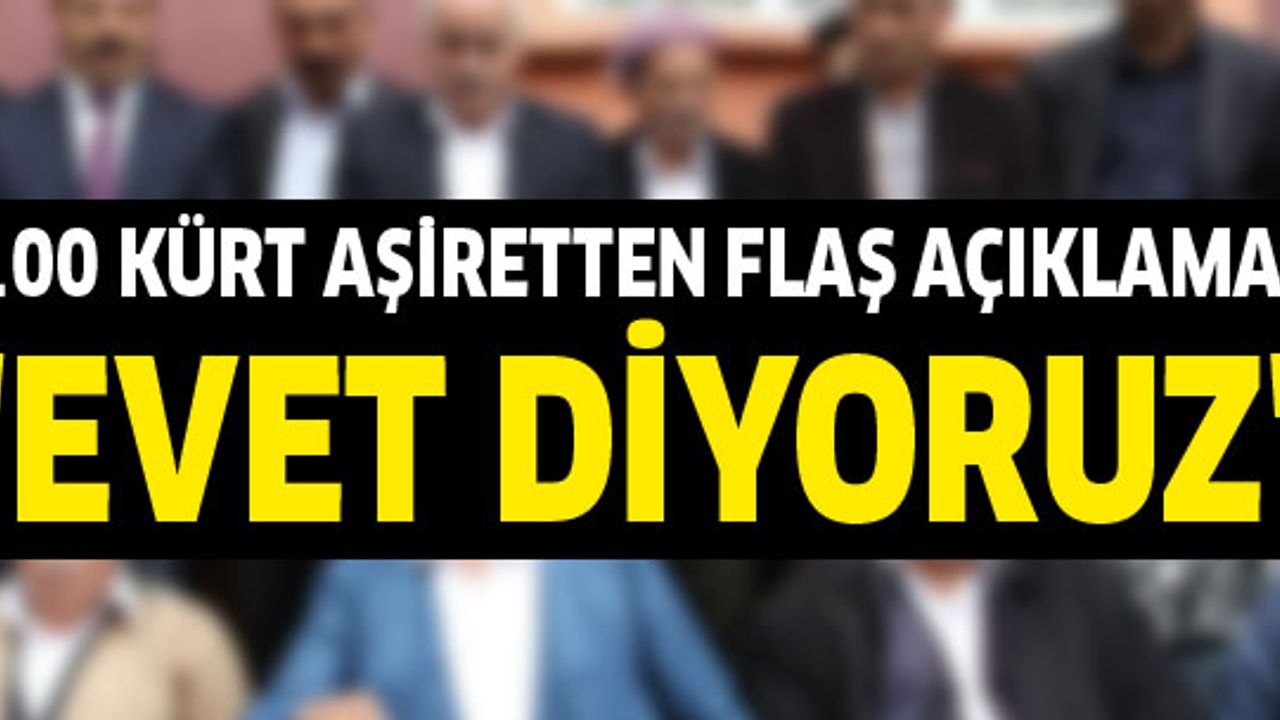 Doğu ve Güneydoğu'daki 100 büyük Kürt aşiret ve aileler, referandumda "evet" oyu vereceklerini açıkladı. Cumhurbaşkanı Recep Tayyip Erdoğan'ın referandum sürecinde yalnız bırakmayacağını ifade eden Kürt aşiretler, "Biz Kürt aşiretler olarak Referandum "evet" diyerek Cumhurbaşkanımızın yanında olacağız. Bu refarandum sürecinde de "evet kampanyası' yürüteceğiz" şeklinde konuştu.