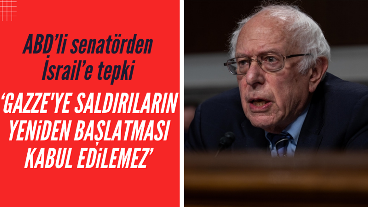 Paylaşımında Sanders, "Netanyahu'nun Gazze'de saldırılarını yeniden başlatması kabul edilemez. Şu anda Gazze'nin güneyinde 2 milyon insan yaşıyor. Birçoğu daha önce kuzeydeki çatışmalardan kaçtı." ifadelerini kullandı.
