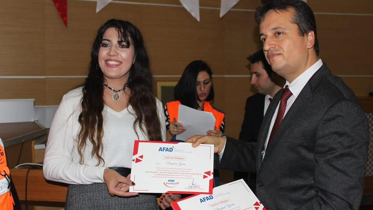 Tören İl Müdürü Hüseyin Kaşkaş'ın açılış konuşması ile başladı. İl Müdürümüz Hüseyin Kaşkaş; "AFAD Müdürlüğü olarak önlem alma ve risk azaltma kültürünü toplum içerisinde geliştirmek, eğitim faaliyetlerini hızlandırmak, modern teknoloji ve iletişim imkanlarından faydalanmak, yerel ve ulusal ölçekte iş birliğini geliştirmek, kurumlararası iş birliği sağlamak önceliklerimiz olarak belirlenmiştir. Afetlerle Mücadele sadece devlete ya da birkaç kuruma ihale edilerek geçiştirilecek bir konu değildir. Topyekün Mücadele edilecek bir konudur. AFAD Başkanlığımız tarafından 81 İlimizde başlatılan AFAD Gönüllülüğü projemiz kapsamında İlimizde yürüttüğümüz faaliyetlerimizde geniş bir yol kat etmiş durumdayız. Aktif olarak Gönüllü kaydını aldığımız 4.650 kişiden 1800 gönüllümüze ilk yardım eğitimi, 1950 gönüllümüze yangın eğitimi, 780 gönüllümüze hafif arama kurtarma eğitimi, 4300 gönüllümüze temel afet bilinci eğitimi, 250 gönüllümüze haberleşme ve muhabere eğitimi ayrı ayrı verilmiş olup burada bulunan 200 gönüllümüz ise bu eğitimin tamamını alarak 'Katılım Belgeleri ve Gönüllü Kimlik Kartları' almaya hak kazanmıştır." diyerek tüm katılımcılara teşekkür etti. Eğitim sonunda arama kurtarma eğitmenliğini ise Necef Necibe Kızgın kazandı.