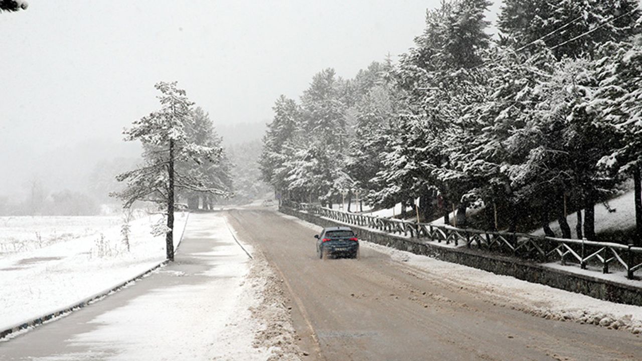 Domaniç-İnegöl kara yolunun 1500 metre rakımlı Kocayayla mevkisi yağış nedeniyle beyaza büründü.