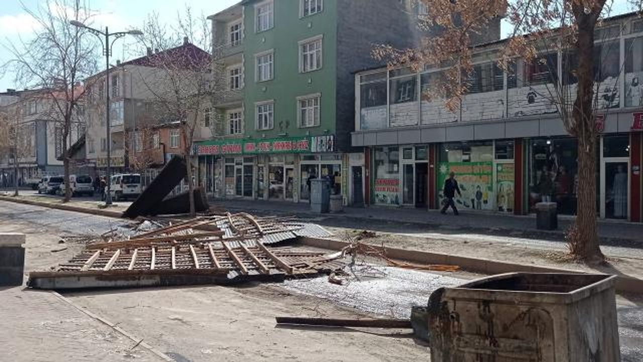İlçe merkezinde de fırtına nedeniyle bir binanın çatısı yola düştü.