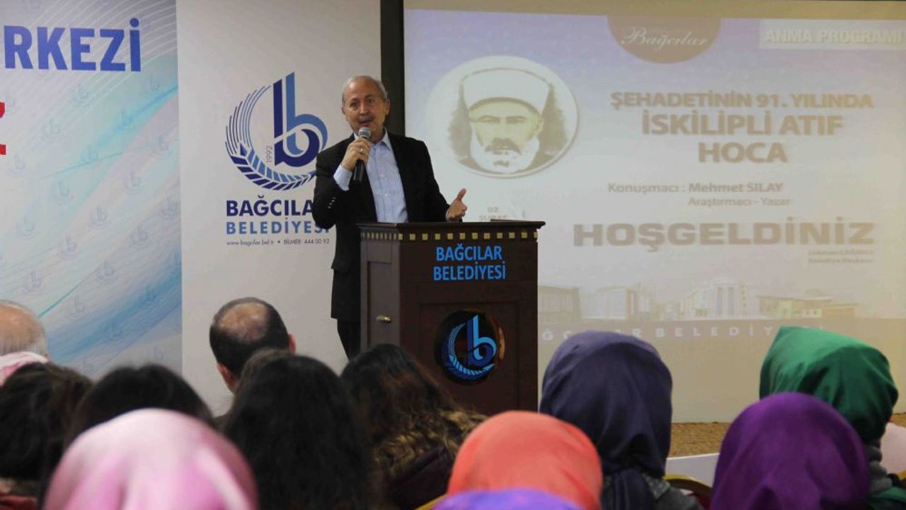 Araştırmacı-Yazar Mehmet Sılay, Bağcılar Belediyesi Gençlik Merkezi'nde düzenlenen anma programında, İskilipli Atıf Hoca ile ilgili bilinen ve bilinmeyen önemli konulara değindi. İskilipli Atıf Hoca'yı vefatının 91. yılında andıklarını ifade eden Sılay, ayet-i kerimede 'Allah yolunda ölenlere ölü demeyin, onlar diridirler' diye buyurulduğunu söyledi. İskilipli Atıf Hoca'nın en verimli döneminde 50 yaşındayken 4 Şubat 1926'da haksız yere idam edildiğini belirten Sılay, şunları söyledi: "Kalem Yayınlarını kurmuştu. Frenk Mukallitliği ve Şapka kitabını 12 ağustos 1924'te yazdı. Oysa Şapka Kanunu 25 Kasım 1925 yılında çıktı. 7 Aralık'ta Laleli'deki evinde tutuklandı. Evini aradılar ancak o kitabı bulamadılar. Zaten 32 sayfalık broşürdü. Götürülürken ağlayan 18 yaşındaki kızı Melahat'a 'korkma döneceğim' diyor. Ancak, şehit edildi. Evine bir daha dönmedi. Melahat Hanım vefatına yakın aklını yitirmişti. Kendisiyle görüşmek için gelen gazetecilere, 'kendisi orada gidip onunla konuşun' diyordu. Çok acılar çekti."