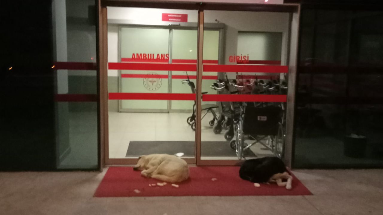 Başıboş köpek sorunu giderek büyüyor. Bu kez Çekmeköy Devlet Hastanesi'nin acil girişinde başıboş köpeklerin yattığı görüldü.