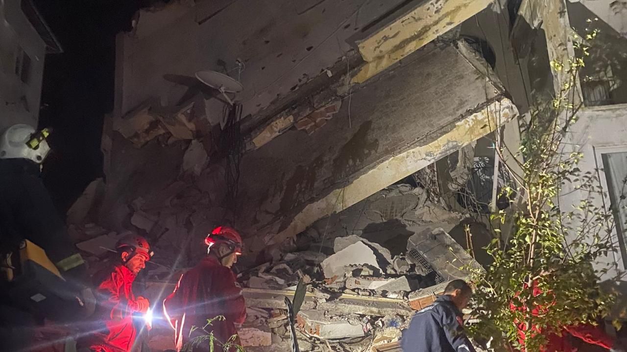 AFAD ve AKUT ekipleri tedbir amaçlı bina enkazında arama çalışması yapıyor.